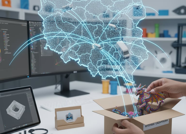 Działamy na terenie całej Polski, realizując zamówienia wysyłkowo. Oferujemy kompleksowe usługi druku 3D, od pomysłu po gotowy produkt.